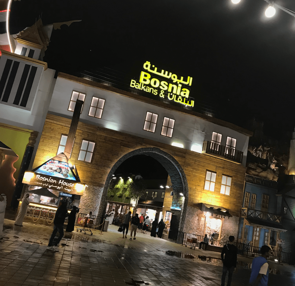 Global Vilidž jedna je od najpopularnijih zabavnih atrakcija među turistima koji posećuju Ujedinjene Arapske Emirate, ali i jedna od najdražih među stanovnicima ove zemlje. Otvoren je 1996. u oblasti Dubai Krika, u vidu nekolicine kiosaka koji su sa preko pola miliona posetilaca brzo nadrasli početnu zamisao kao popularnoj destinaciji koja će simbolično predstaviti različitost kultura koje postoje u zemlji na obali Arabijskog zaliva. Već naredne godine premešten je u obližnju oblast Oud Meta, da bi posle pola decenije najzad dobila trajno “boravište” na sadašnjoj lokaciji, uz autoput Šejka Mohameda bin Zajeda (E311). Poslednje dve godine imao je preko sedam miliona gostiju što ga čini jednim od najposećenijih zabavnih parkova na svetu.
